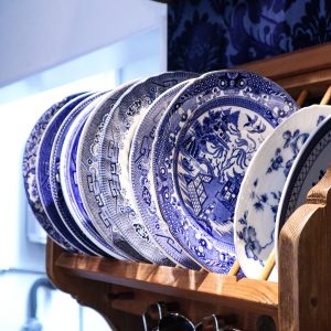 お皿もブルー。英国バーレイ社のものを使用。